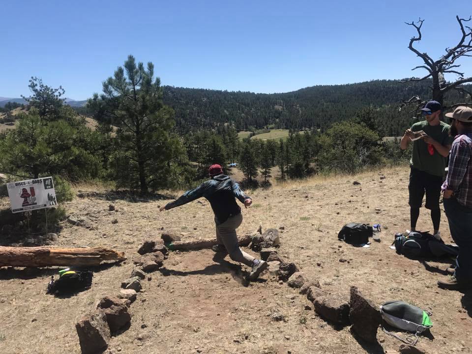 The first day, Friday, everyone began arriving around noon and immediately set up camp and hit one of two courses in Guffey, CO. Due to strict attendance and permitting, we had to have everyone checked in between noon and 2:00PM. When checking in, attendees signed waivers and had IDs verified against the invite list before being given a custom Hyzerbomb Discs-n-Dabs disc, this year’s t-shirts, event passes, scorecards and a rig and torch for every team. The shuttle arrive shortly after noon and began taking four teams at a time to SKOL Ranch, the newest course to be added to the Discs-n-Dabs event. This year, teams played two rounds of disc golf, on two separate courses in Park County.